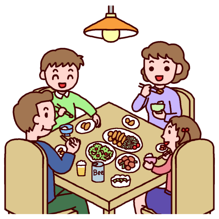 家族で夕食ディナーイラスト 食卓を囲む家族の家族で夕食ディナーイラスト